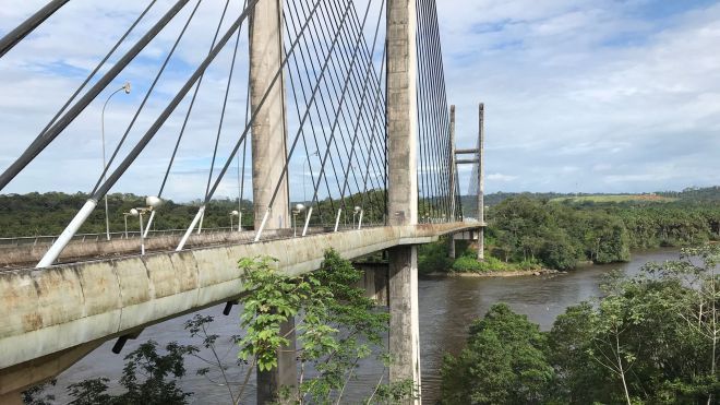 Majestueux, le pont de l'Oyapock long de 378m s'élance au dessus du fleuve frontière. Ce pont terminé depuis 2012 a été inauguré après bien des péripéties en mars 2017. Depuis, il n'est utilisé que dans un seul sens, celui de la rive française vers le Brésil. Peu de voitures traversent, les habitants de la région continuent d'utiliser les services des piroguiers.