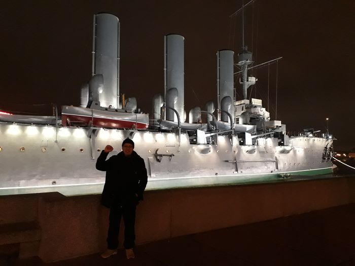 Dans l'ordre, les photos : une troupe de bénévoles est venue fêter la révolution russe à l'intérieur de la citadelle Pierre et Paul. L'un d'eux avait écrit dans le dos "Dieu est avec nous !".