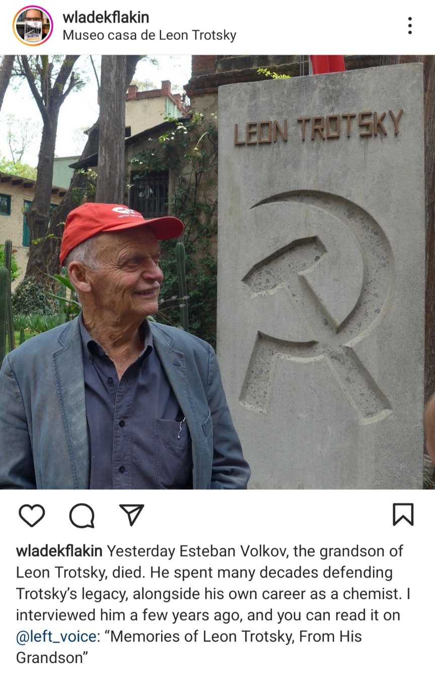 D'après le compte Instagram de l'historien et militant de la FTQI Nathaniel Flakin, le petit-fils de Léon Trotsky, Esteban Sieva Volkov, est décédé hier à l'âge de 97 ans.