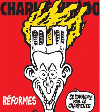 C'est déjà annoncé : "Réformes, je commence par la charpente", avec Macron couronné par les tours en flammes...